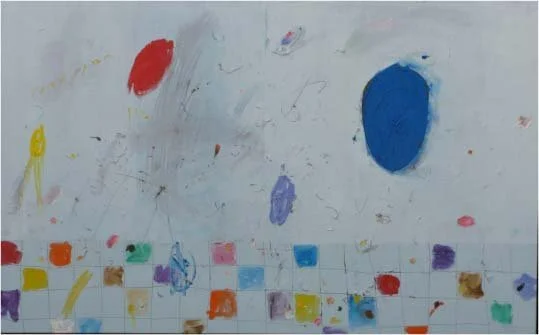 "DE CUADROS Y PARTÍCULAS" óleo sobre lino de 81X130 cm
