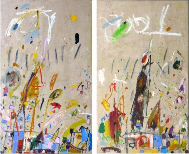 "MOGIGANGOS" óleo sobre lino, díptico de 2x100x65 cm